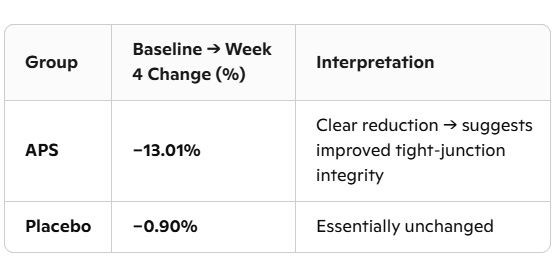 In het bloed van de proefpersonen nam tijdens de AstraGin-periode de concentratie zonuline af. Zonuline is een eiwit dat de darmwand doordringbaar maakt voor voedingsstoffen - maar ook voor toxines. Een lagere concentratie zonuline suggereert dat de darmen beter in staat zijn toxines buiten te houden.