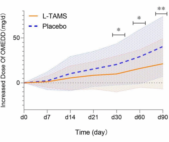 Na 3 maanden was de dagelijkse dosis opioïden in de placebogroep toegenomen met 40 milligram. Bij de experimentele groep was dat 21 milligram.