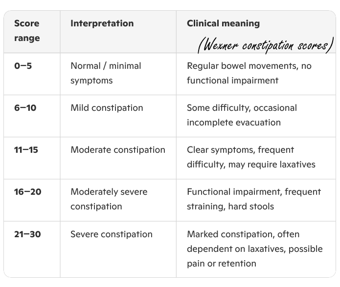 Een bijwerking van opioïden is constipatie. Artsen bepalen de ernst van constipatie aan de hand van de Wexner Constipation Score.