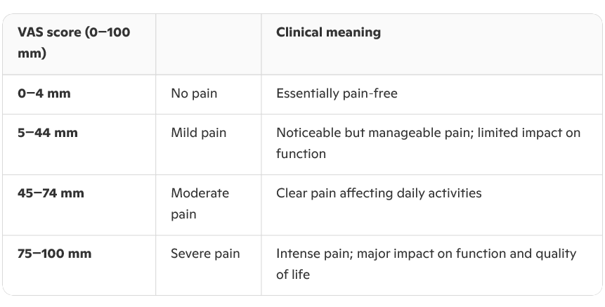 In de Q10-groep zakten de pijnscores nog sterker. De gemiddelde score zakte naar het niveau waarin de pijn bijna volledig weg was.