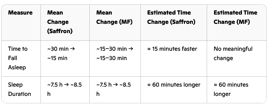 Beide middelen lieten, volgens vragenlijsten die de ouders van de kinderen hadden ingevuld, de hoeveelheid slaap toenemen met een uur. Alleen saffraan verminderde de tijd die de kinderen nodig hadden om in slaap te vallen - met een kwartier, om precies te zijn.