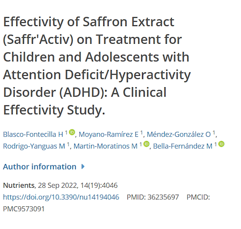 Kinderen en tieners met een matige vorm van ADHD reageren even goed op medicatie met methylfenidaat [de actieve stof in Ritaline] als op suppletie met een extract uit saffraan. Volgens een Spaanse pilot study uit 2022 veranderen beide middelen een matige vorm van ADHD in een milde vorm van ADHD.