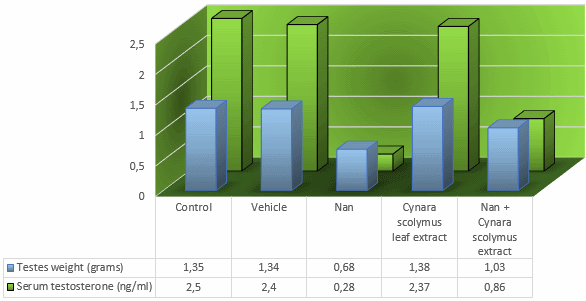 De Egyptenaren vermoeden dat artisjok de testes beschermt doordat het de aanmaak van endogene antioxidanten verhoogt. Ze ontdekten dat nandrolon de totale antioxidantwerking en de