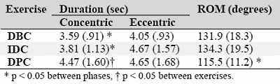 Daar komt nog bij dat de beweging bij de preacher curl korter was dan bij de andere oefeningen. [Tabel]