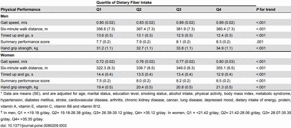 "Further prospective observational studies are needed to confirm the relationships we observed. Intervention trials might be warranted to determine whether increasing people's fiber intake reduces their functional decline."