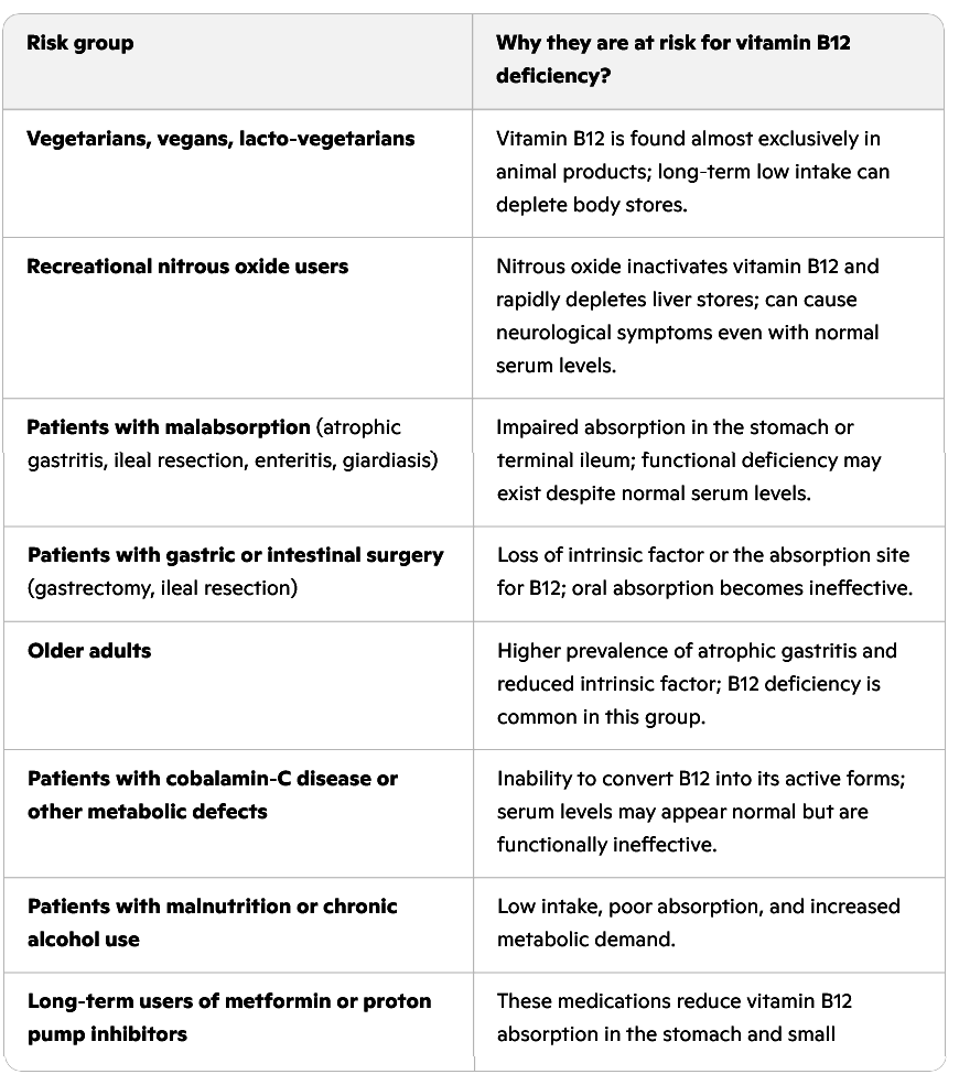 Een tekort aan vitamine B12 gaat vaak gepaard met bloedarmoede. Bloedarmoede kwam voor bij slechts 32 procent van de gevallen. Dat betekent dat de meeste patiënten niet de klassieke symptomen hadden van een tekort aan vitamine B12.