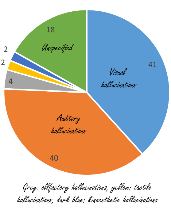 In de meeste gevallen vloeiden de hallucinaties voort uit een neuropsychiatrische aandoening en hadden de patiënten ook andere symptomen, zoals paranoia, waandenkbeelden of geheugenproblemen. In die gevallen kregen de patiënten antipsychotica, antidepressiva of andere psychotrope medicijnen.