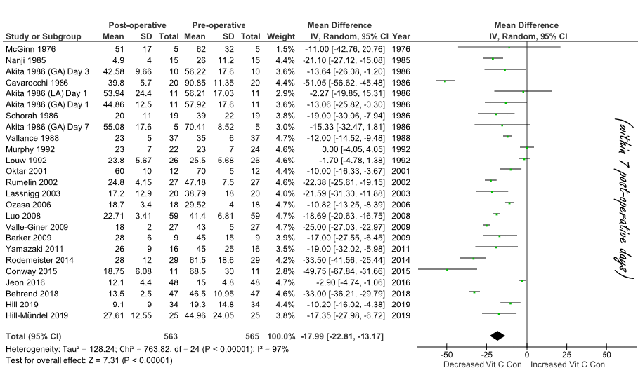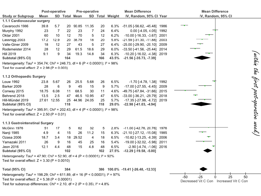 Chirurgische ingreep berooft het lichaam van vitamine C Na een chirurgische ingreep keldert de concentratie vitamine C in het lichaam, concludeert een meta-studie die in 2020 verscheen in de British Journal of Nutrition. Hebben patiënten na een operatie meer behoefte aan vitamine C?