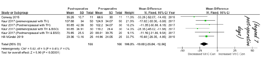 "Preliminary studies have revealed that post-operative depletions in vitamin C may be potentially associated with impaired wound healing, disrupted pain modulation (through impaired vitamin C histamine synthesis), impaired cognition, increased risk of arthrofibrosis and prolonged hospital stay."